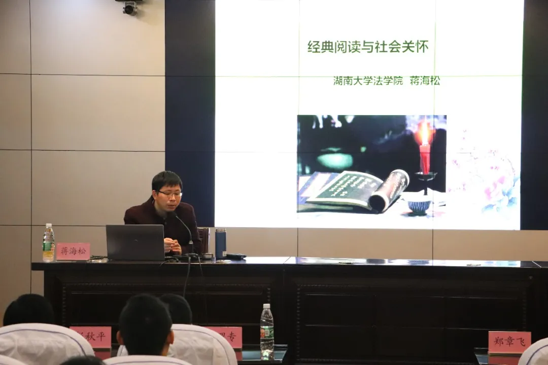 副院长、“全国七五普法先进个人”获得者蒋海松老师作题为“经典阅读与社会关怀”的讲座, 海角社区