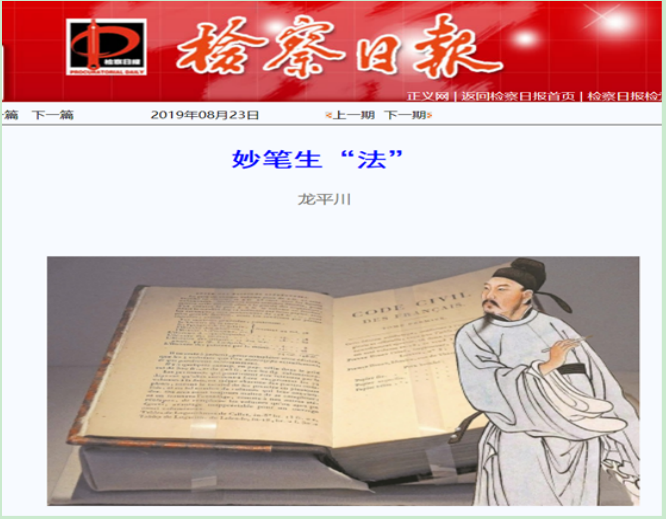 官网的报道。《检察日报》推出了《妙笔生“法”》的长篇学术通讯,法律博客在主页