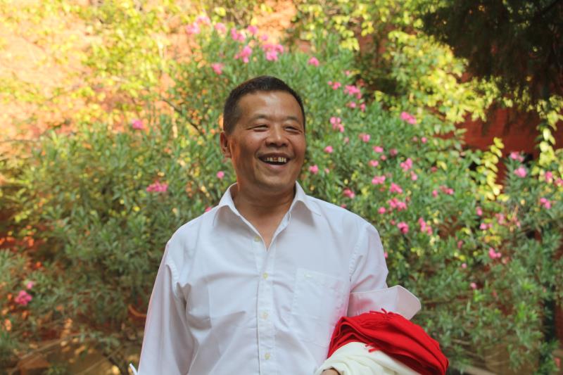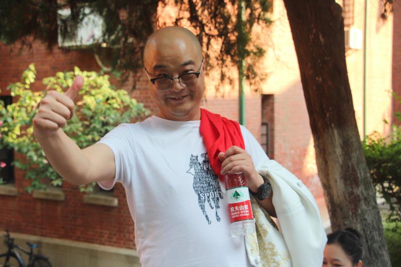 (王红兵老师腿脚病痛、不便长时间站立,但一直坚持参加训练和比赛,点赞)