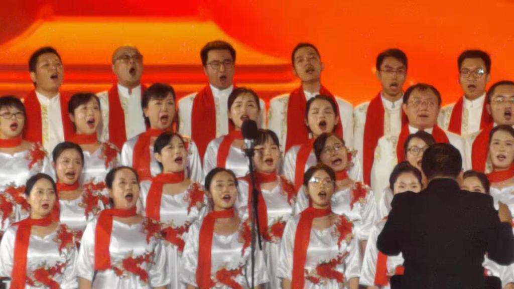 特别致谢马青波老师。投入巨大精力,不但领唱,还承担了服装、道具、化妆、背景视频、联系教练钢琴等具体组织工作,功不可没!男老师领唱龙博老师,音质高亢,高度敬业.