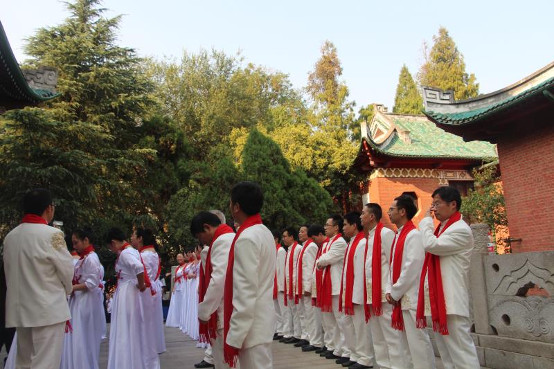 马青波老师、龙博老师领唱,歌声嘹亮(中间和右一)
