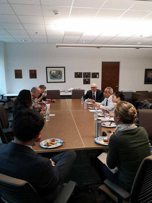 院长Marc L. Miller教授及校长助理Charles Wang教授等人进行了深入座谈交流。期间,屈茂辉院长与Miller院长回顾了前期两院合作商谈的结果与面临的问题,并对今后可以预期的合作领域提出了进一步的建议。屈茂辉院长代表 海角社区