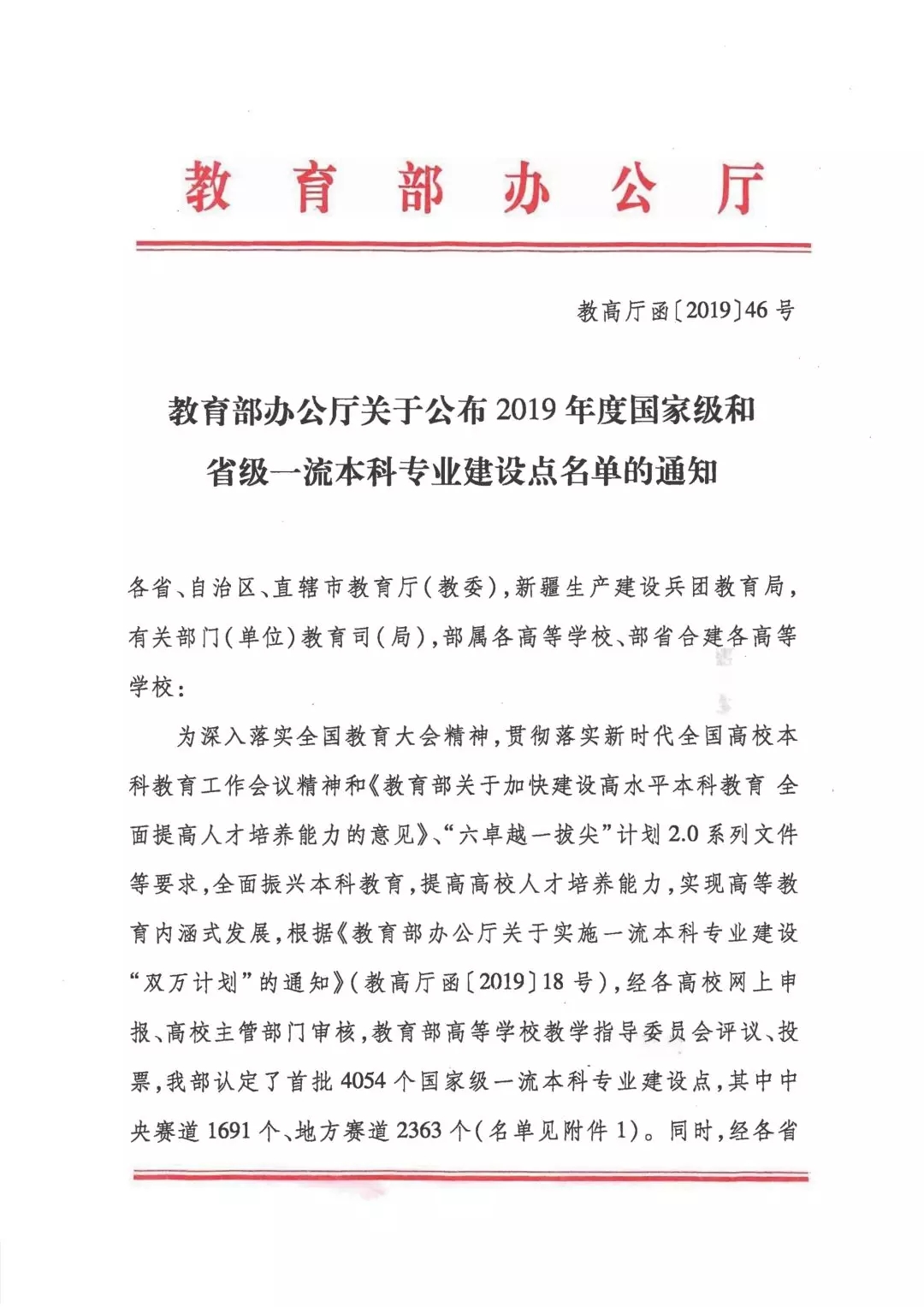 2019年12月24日,教育部办公厅公布2019年度国家级和省级一流本科专业建设点名单。 海角社区 法学专业入选国家级一流本科专业建设点。