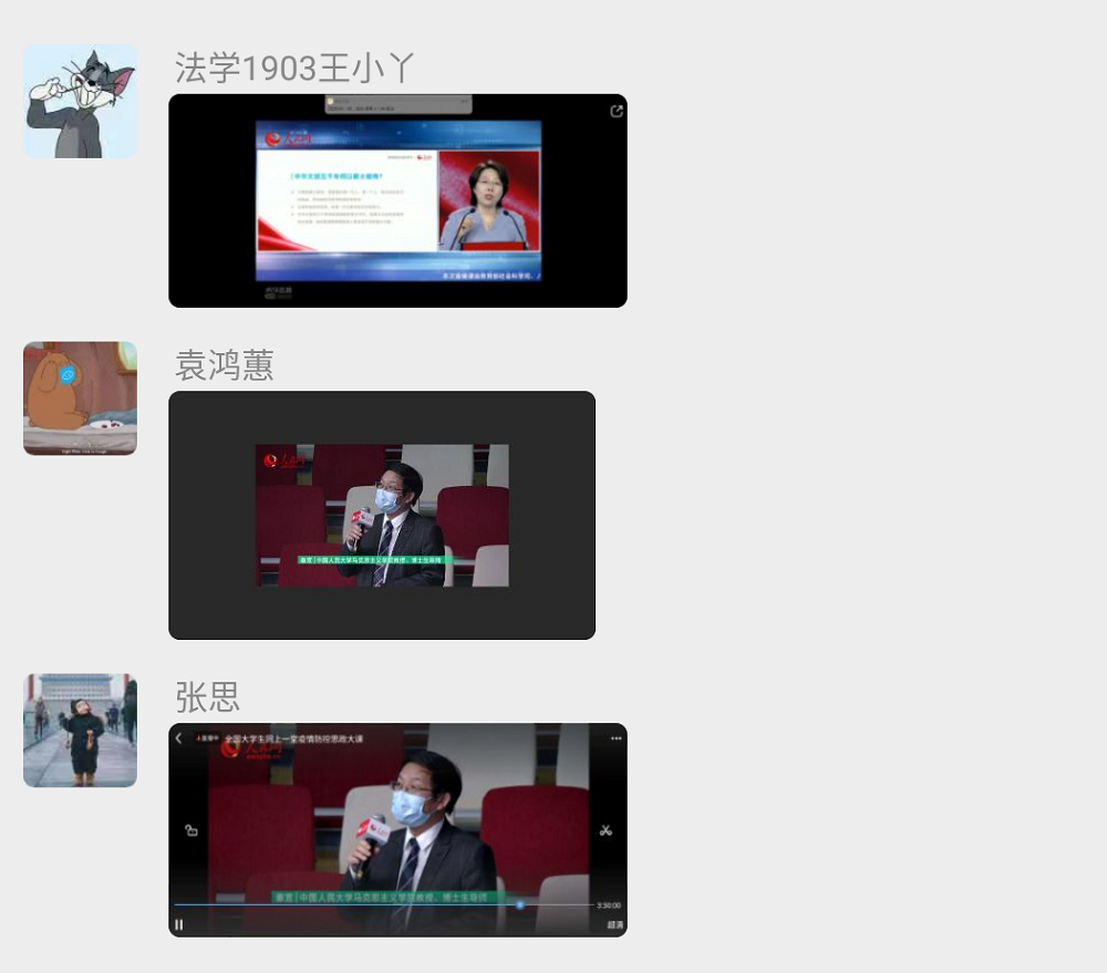 全体学生虽然相隔千里,但身为青年学子的使命感和爱国之心却时刻相连。同学们迅速响应学院号召,满怀求知热情,准时在家通过网络观看直播,仔细聆听四位教授在线讲述此次疫情防控阻击战带来的思考与启示。课后,同学们就所学所感进行了热烈的讨论。
