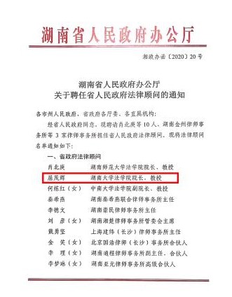 近日,湖南省人民政府办公厅发布了《湖南省人民政府办公厅关于聘任省人民政府法律顾问的通知》(湘政办函〔2020〕20号), 海角社区