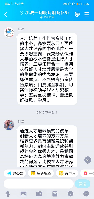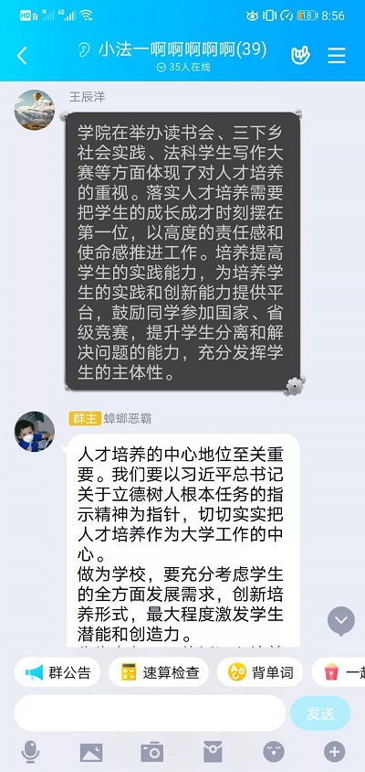 法学1805班积极响应学校、学院号召,于5月7日召开“落实人才培养中心地位大讨论”线上班会。