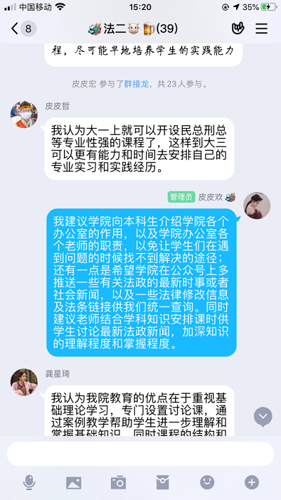 法学1802班于5月14日下午开展了线上讨论交流。