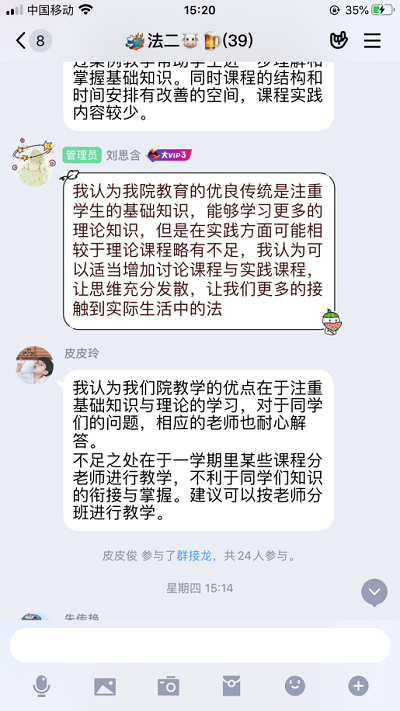(3) 学院有些活动带有强制性参加的色彩,而且似乎并不会促进学生的进步,建议学院活动尽量采取自愿参加的模式。