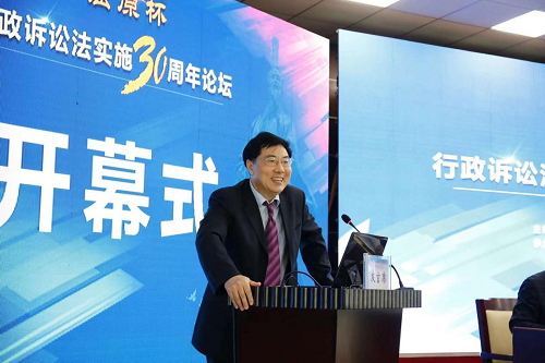 名誉院长姜明安教授在开幕式上致辞。他提及行政诉讼法实施30周年促使国人的观念发生了重大转变,推动政府的治理方式发生了重大转变,促使国家政策目标更加亲民为民。在现场,姜明安教授诚挚的向长期以来从事行政诉讼的法官、工作人员鞠躬,并表示感谢,获得会场参与者们热烈掌声。