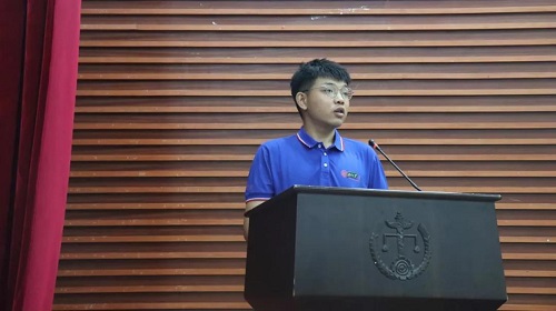 紧接着,新生代表2021级法学硕士班杨思齐同学发言。他首先分享了自己考入湖大 海角社区 的喜悦,并代表全体新生向老师们表示感谢。随后他代表新生向大家做出承诺:一是坚定理想信念,锤炼品德修为;二是掌握研究方法,踏实努力学习;三是遵守校规校纪,做新时代合格研究生。并对未来做出展望,站在人生的新起点,在老师的谆谆教诲和自己的勤奋努力下,前行的道路会愈加宽广。