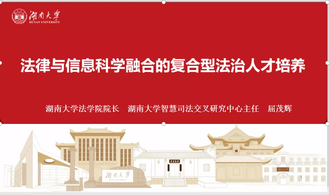 智慧司法交叉研究中心主任屈茂辉教授应邀参会并做了《复合型法治人才创新培养的湖大实践————以法律与信息科技的融合为切入》的主题报告。会议举行了中国法学会法学教育研究会理工类高校法学教育专业委员会成立仪式。