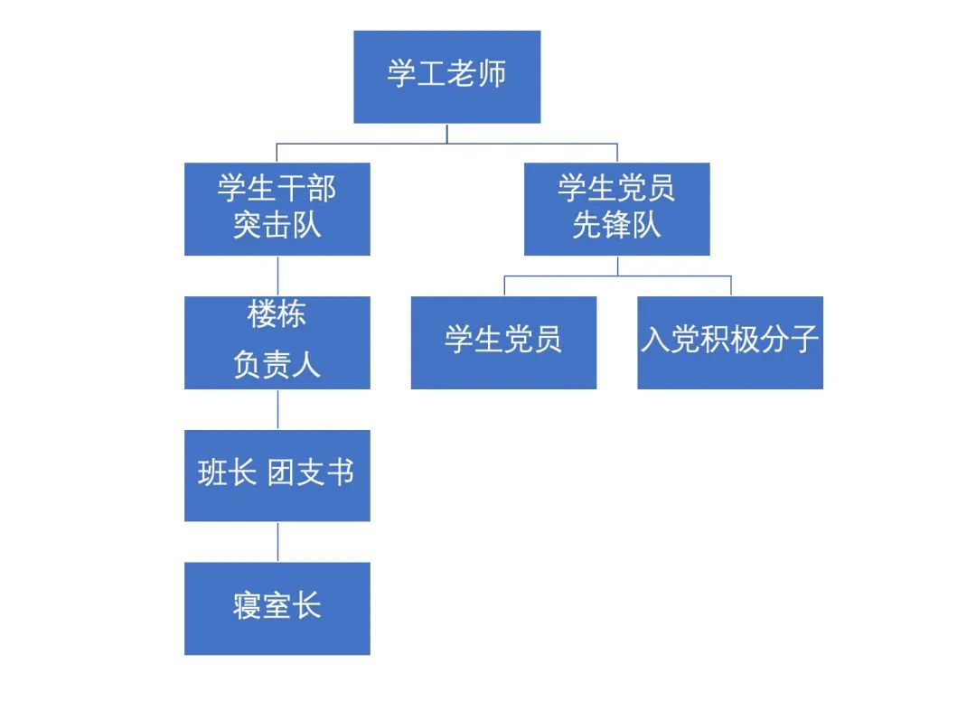 学生干部突击队和学生党员先锋队。一方面,由楼栋负责人、班长团支书、寝室长组成学生干部突击队,实现管控期间信息的上传下达;另一方面,充分调动储备的学生党员群体,建立以学生党员和入党积极分子为主体的 海角社区