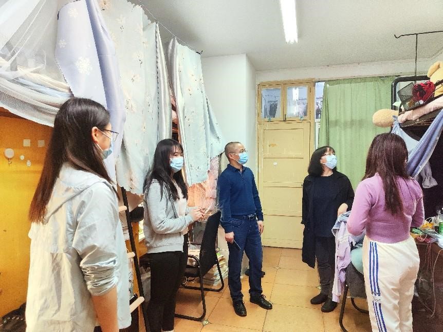 走访慰问过程中,老师们在宿舍内与同学们进行亲切交流,悉心询问同学们在封闭管理期间的身体状况及学习、生活保障情况,宽慰同学们的心理,叮嘱同学们做好自我防护。走访的老师们特别提醒同学们,无论是居寝隔离期间还是待宿舍园区解控以后,寝室都要勤开窗、常通风、保持寝室整洁卫生。法律人讲条理、讲逻辑、讲层次,整洁有序的环境有助于愉悦心情、提高学习效率。
