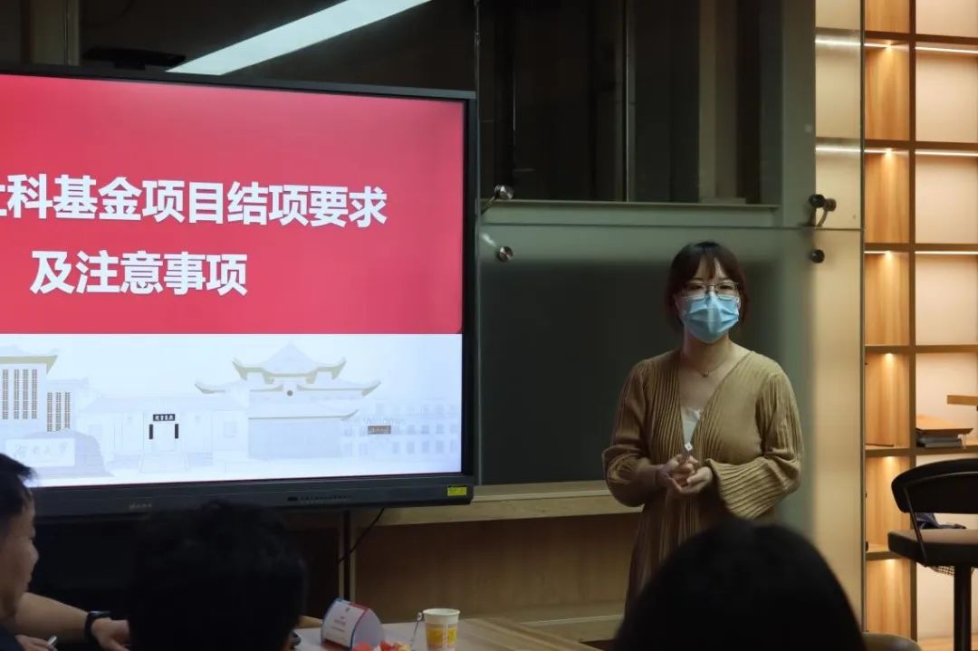 李恩军副处长指出国家社科基金项目是严肃的学术研究,建议各位老师在申请项目时不要“一时兴起”而要做到“慎思慎行”,成功立项后更不能松懈,应高度重视按时按质完成项目研究。