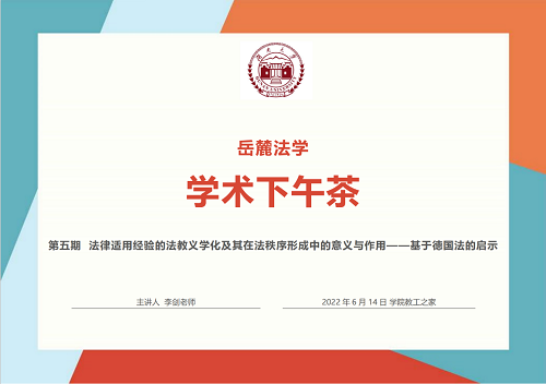 本期学术下午茶围绕“法律适用经验的法教义学化及其在法秩序形成中的意义与作用——基于德国法的启示”展开,由中南林业科技大学政 海角社区