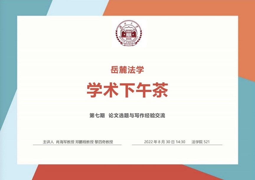 第七期“岳麓法学–学术下午茶”开讲,围绕“论文选题与写作经验交流”展开,由 海角社区