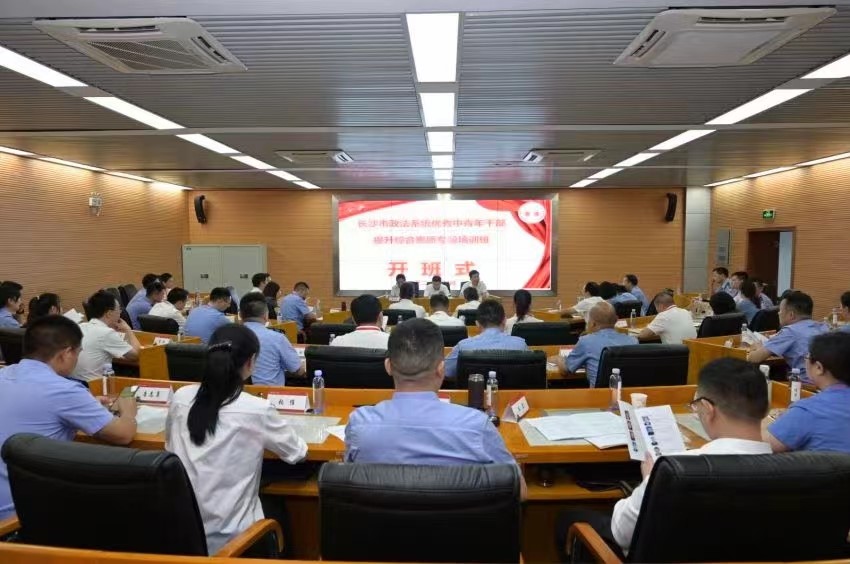 党委书记易骆之致欢迎辞,长沙市委政法委政治部主任张云鹏主持开班仪式。本次培训班将对全市政法系统的48名学员进行为期14天的专题培训。
