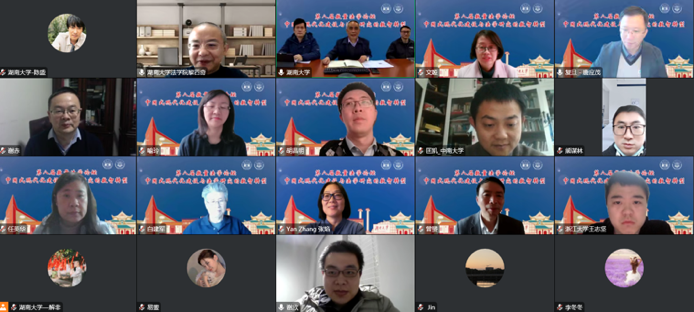 主办,《湖湘法学评论》编辑部协办。来自全国实证与数量法学界的30余名专家学者汇聚一堂,就数量法学和法学实证研究方法相关问题进行了深入而充分的交流与讨论,在线参会人数共计近200人。