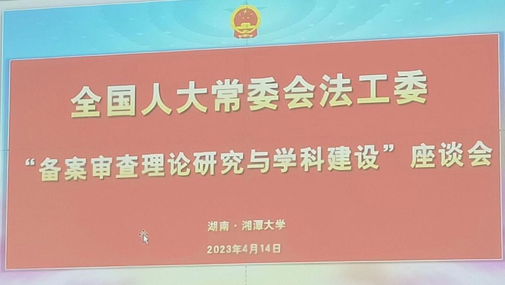 2023年4月14日下午,全国人大常委会法工委“备案审查理论研究与学科建设”座谈会在湘潭大学 海角社区