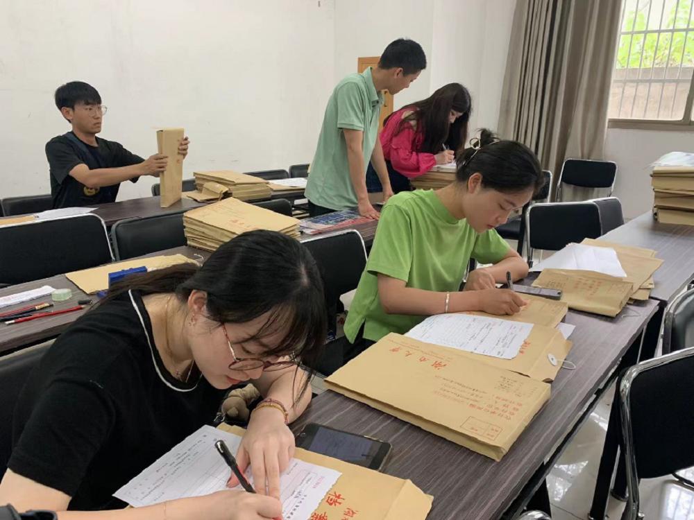 (研究生党员志愿者为毕业生整理档案)