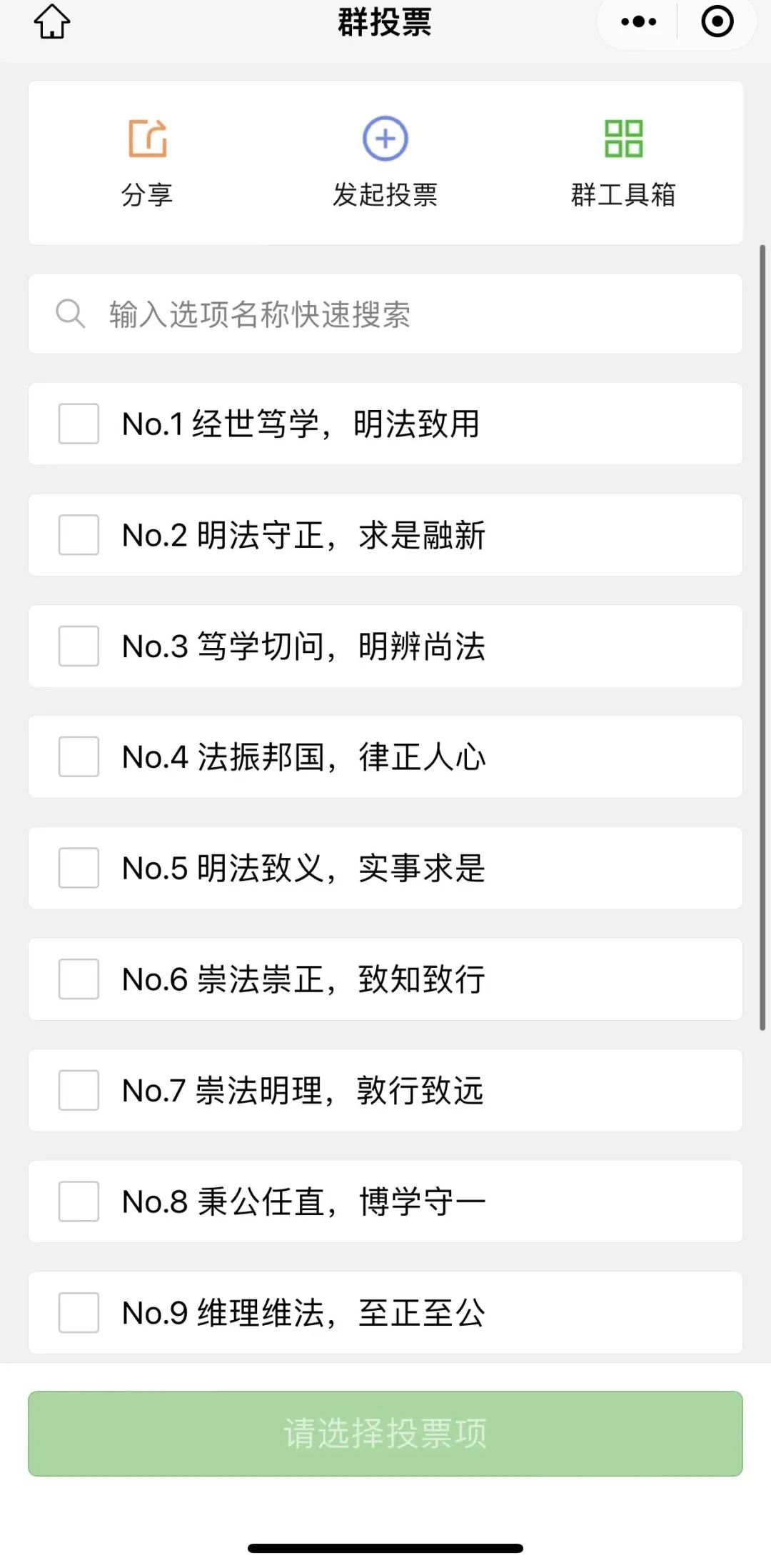 (每人必须投三票选出三条,多于或少于三票均为无效票)