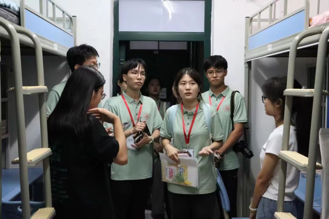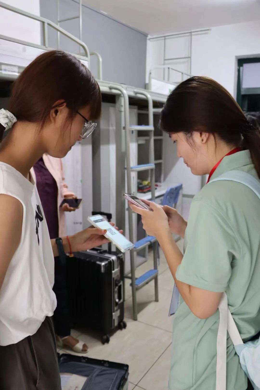 报到当晚,学院领导走进寝室,与新同学们交流,表示慰问。迎新团队组织查寝,确认新生入住情况,与萌新们交流报到感受,对萌新们的疑问做出详细解答。