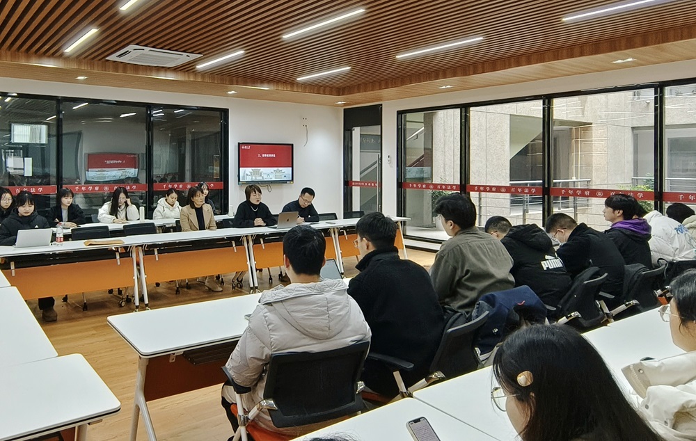 导学思政空间召开本学期第一次全体会议,党委副书记罗英老师、党务与学生办公室刘岳峰老师、研究生辅导员郑琼英老师与全体研会成员参加本次会议。
