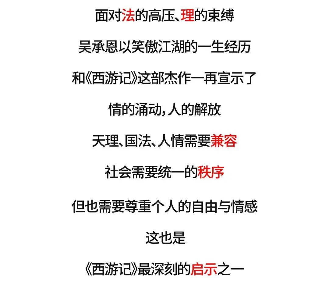 《〈西游记〉中的情理法》创造性地借用文学名著传播法律智慧,对大众熟知的神话小说进行深度学术解读。节目讲述神话故事,探索法的智慧,反思人的精神。通过解读《西游记》中情与法的碰撞,剖析明代社会“以情叛理”的思潮变迁,评点古代律法的得失成败,呈现《西游记》张扬自由、向往正义、追求善治的伟大思想担当,弘扬优秀传统文化。
