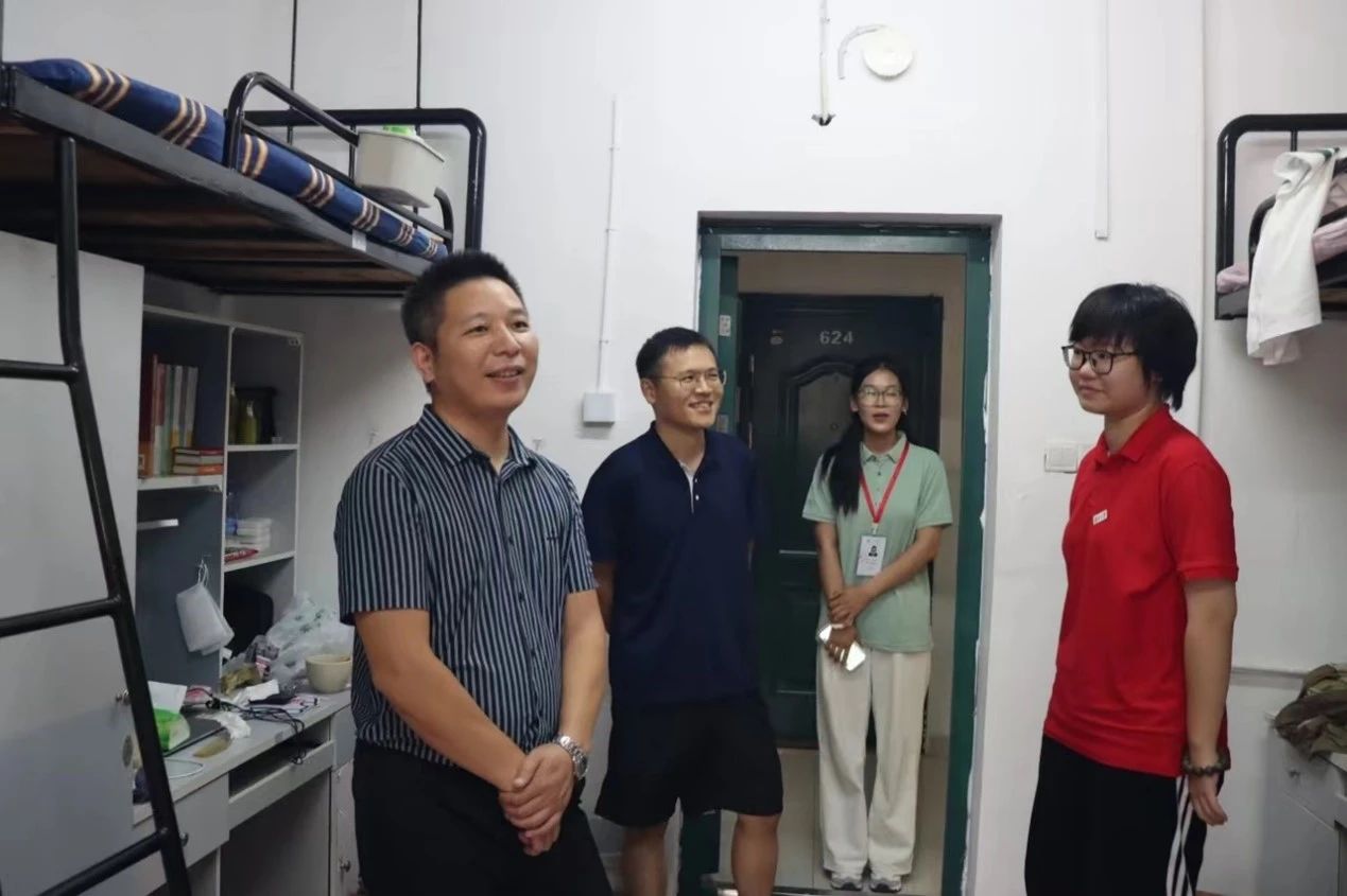 2024级新生报到工作圆满完成。为全面了解2024级新生们的生活安顿情况,帮助他们尽快适应新环境,在学院党委书记李劲松、院长黎四奇的组织下,院领导及新生班主任深入园区宿舍开展走访看望工作,以增强新生归属感,引导新生以积极、饱满的状态迎接新的校园生活。