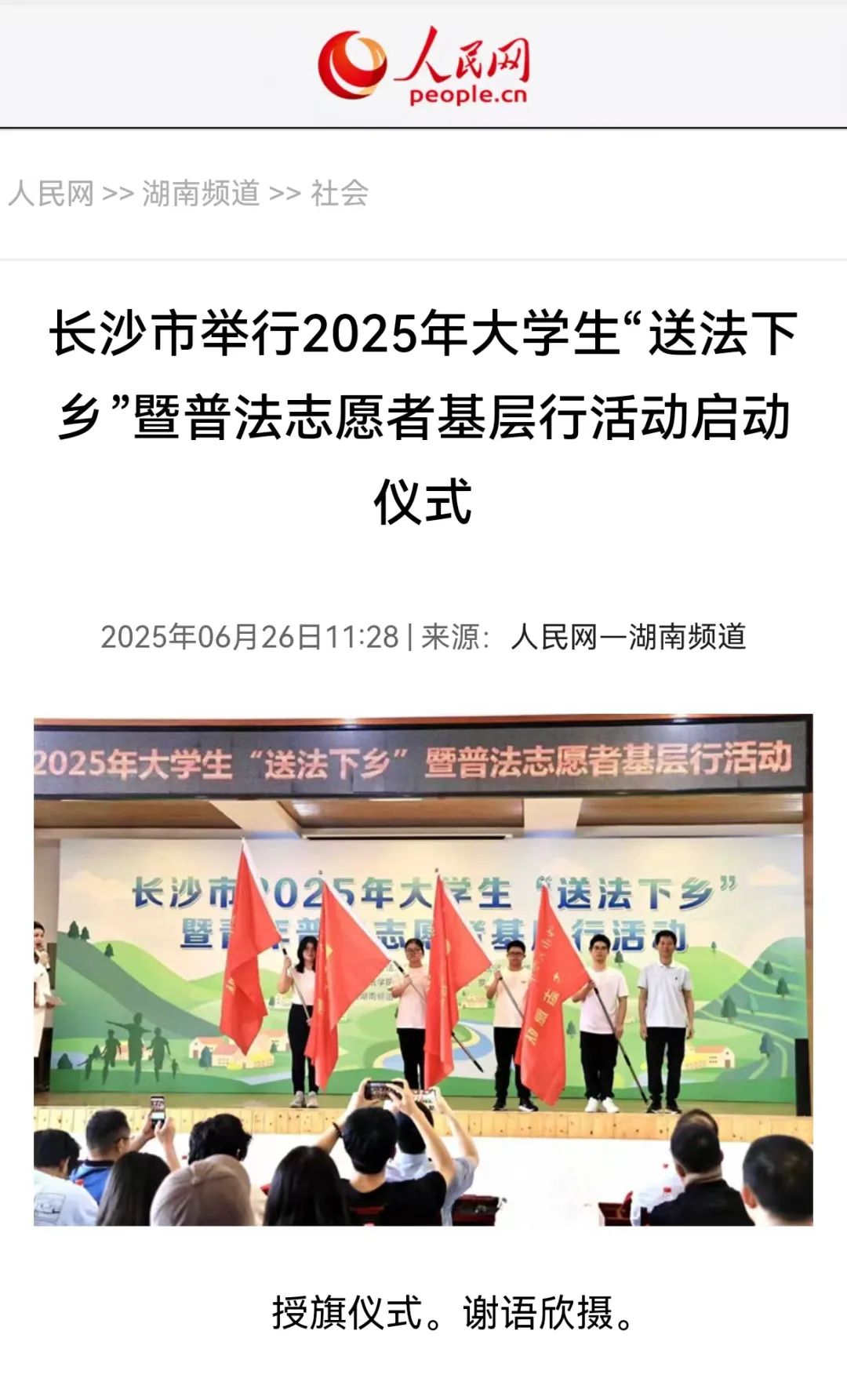 2025年6月25日,长沙市2025年大学生“送法下乡”暨普法志愿者基层行活动顺利开展。本次活动是由长沙市守法普法工作办公室、长沙市司法局、开福区司法局主办,由 海角社区