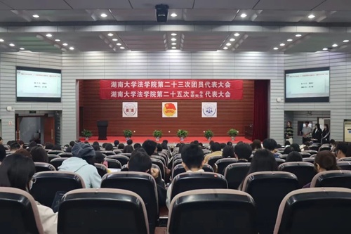 第二十二届团委委员向大会做题为《挺膺担当建新功,砥砺奋进向未来,团结带领全院团员青年踔厉奋发、勇毅前行,努力成长为堪当民族复兴重任的时代新人》的工作报告。报告回顾了二十二届团委在夯实团员信念,厚植实践根基,讲好学院故事,畅通信息渠道等方面取得的成绩与经验,同时认识到共青团工作任重道远,院团干部的能力素质和工作状态仍需提升。接着,他对接下来一年的工作进行了规划和展望,明确未来将聚焦组织建设规范化、实践品牌特色化、宣传内容精品化,持续推进“三会两制一课”落地,深化“岳麓法青”实践品牌,提升宣传矩阵影响力,以“敢担当、善作为”的作风,团结团员青年成长为堪当民族复兴重任的时代新人。