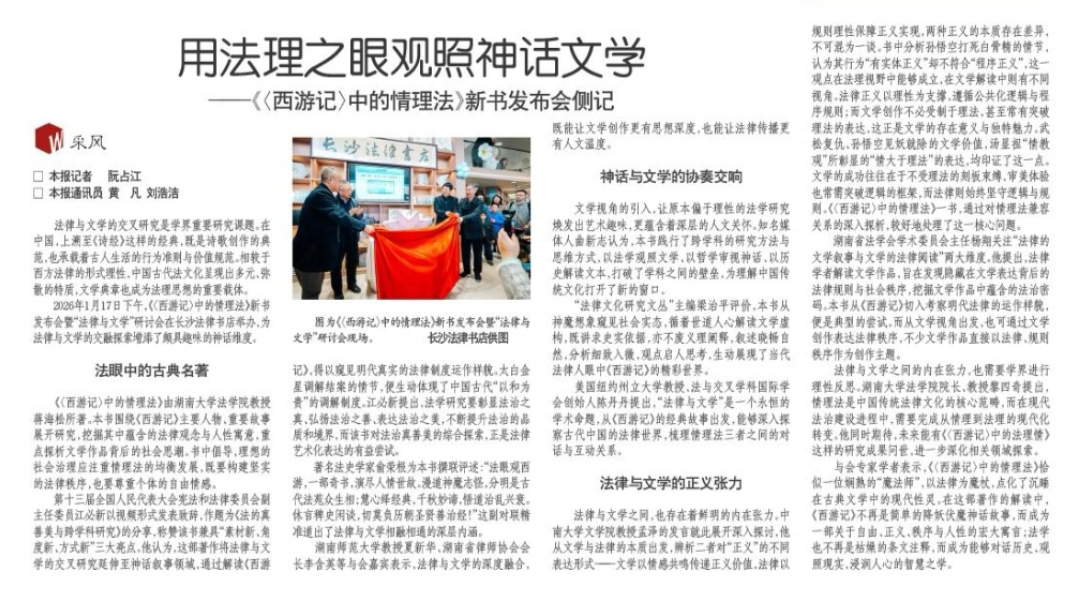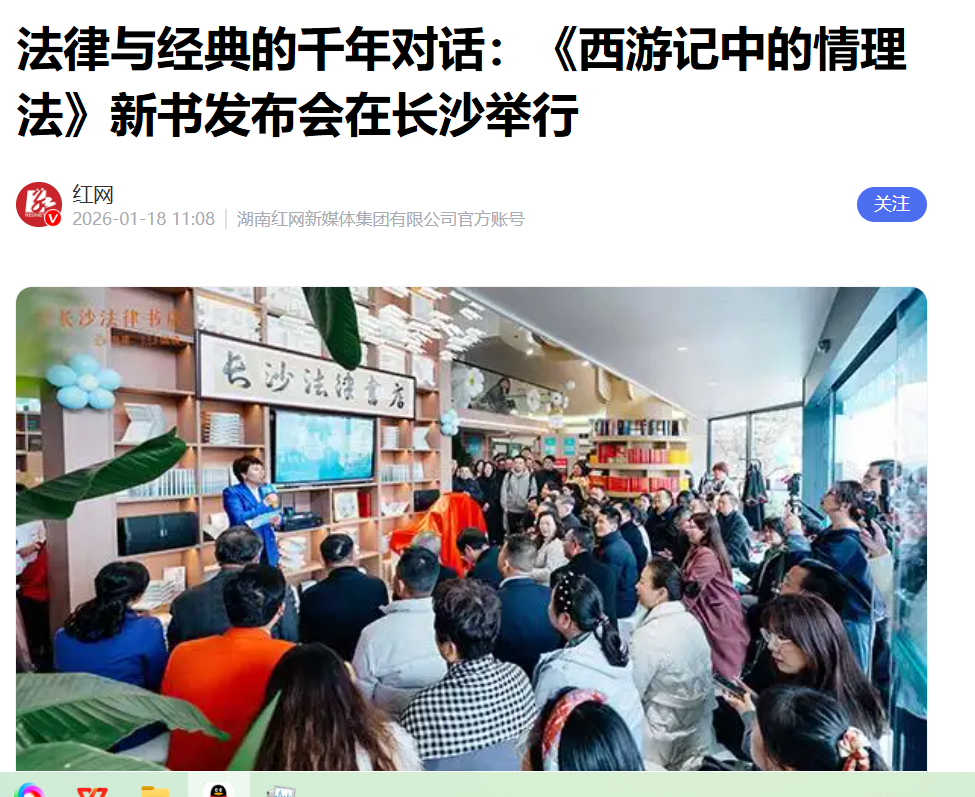 7.红网报道《法律与经典的千年对话:《西游记中的情理法》新书发布会在长沙举行》2026-01-18