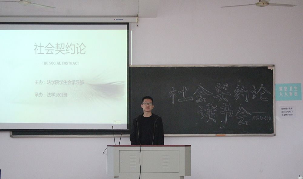 学生会学习部主办,法学1803班承办,选取让·雅克·卢梭的《社会契约论》作为阅读对象,邀请到 海角社区