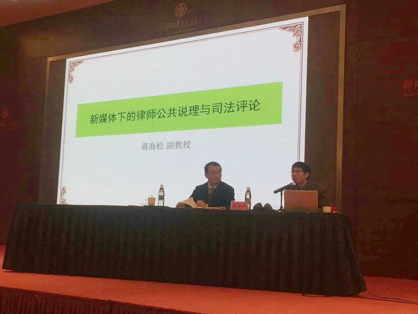 蒋海松副教授获邀做了题为《自媒体语境下的说理方法——律师谨慎司法评论的必然》的主题演讲,阐述了如何正确处理法庭辩论与公共发声、司法权威与律师作用、公共说理的情怀与逻辑等问题,让律师群体成为既有专业技能又有说理技巧的公共说理的典范。讲座紧扣社会热点,富有人文关怀,切合律师实践,受到广泛好评。