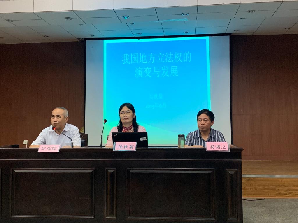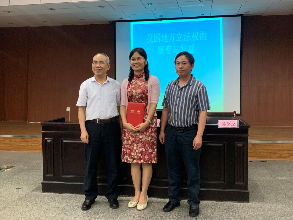 党委书记易骆之老师同湖南省人大常委会法制工作委员会卿晓英主任以评议嘉宾身份出席了本次讲座。