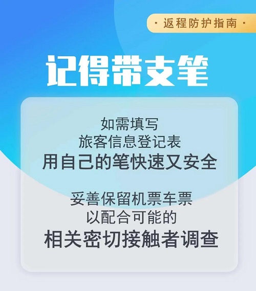 返校时请携带口罩等必要的防护用品,返校途中做好个人防护。