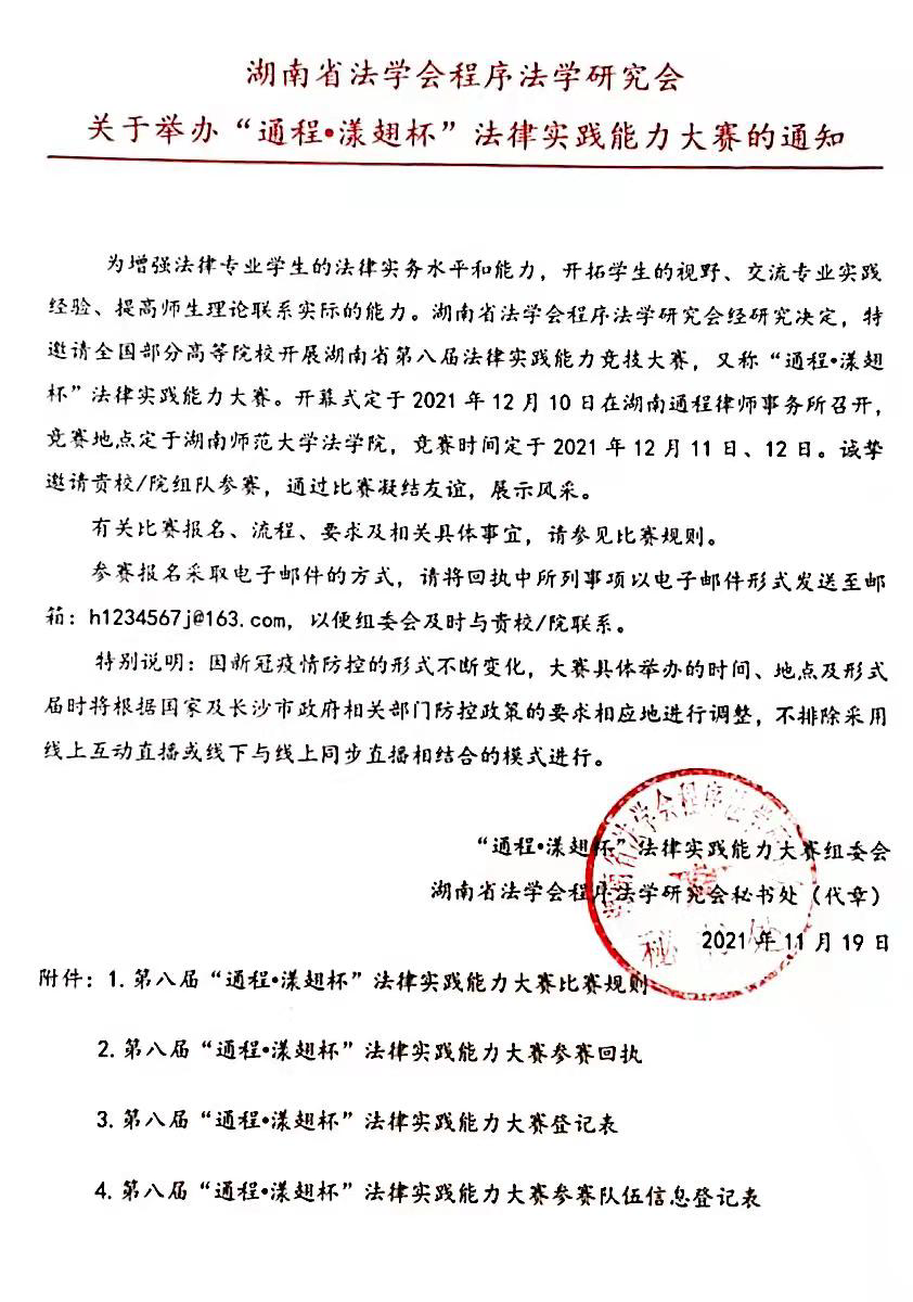 “通程•漾翅杯”法律实践能力大赛,由湖南省法学会程序法学研究会和湖南师范大学 海角社区