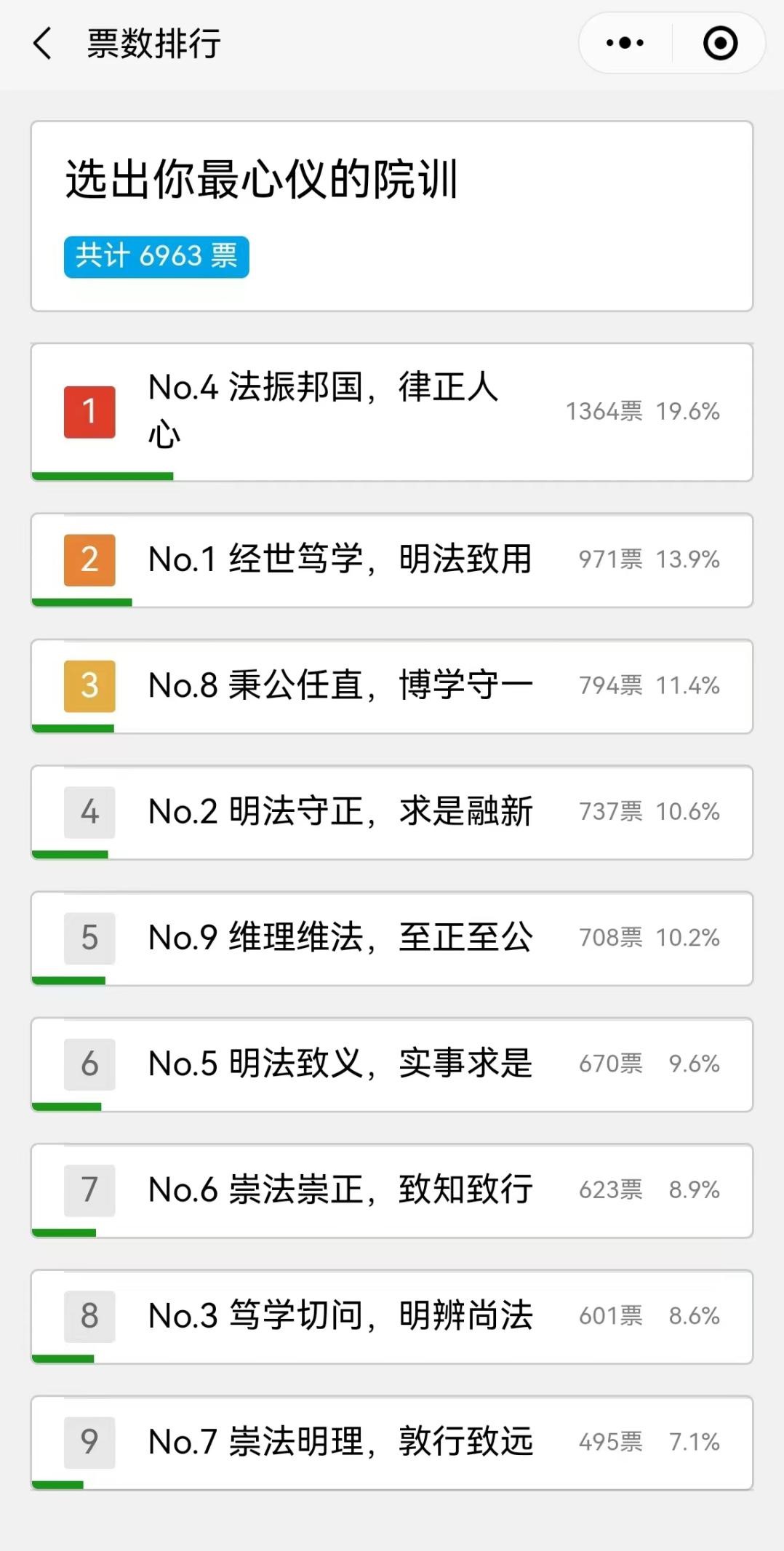 全体师生、院友及关心本院发展的社会各界人士征集院训。经一个多月的网络投票,结果如下: