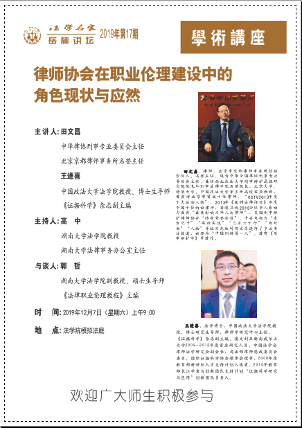 岳麓法学名家讲坛2019年第17期