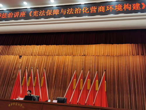 院长助理蒋海松副教授开讲,市发展改革委党委委员、副主任卞佑明主持,委全体干部职工参加。蒋教授根据宪法周活动与最新颁布的《优化营商环境条例》相关内容,结合长沙市经济社会发展实际,进行了深入浅出,紧贴实际的精彩讲授,受到广泛好评。