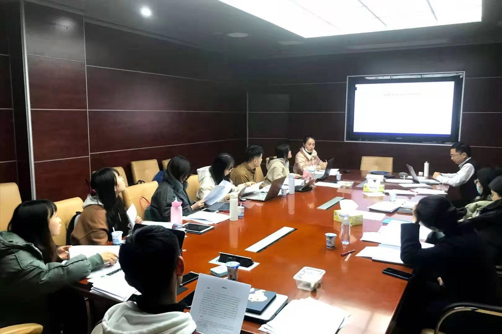 各位同学汇报完毕后,各位导师与同学就汇报内容进行了点评与讨论。导师们对于同学文献综述以及选题方面的具体问题进行了分析与指导,指出部分同学文献综述存在逻辑结构混乱、论文题目定位不明等问题,需要进行修改与调整,并且就具体问题提出针对性建议。例会最后,各位导师就下次例会任务内容提出要求,例会圆满结束。