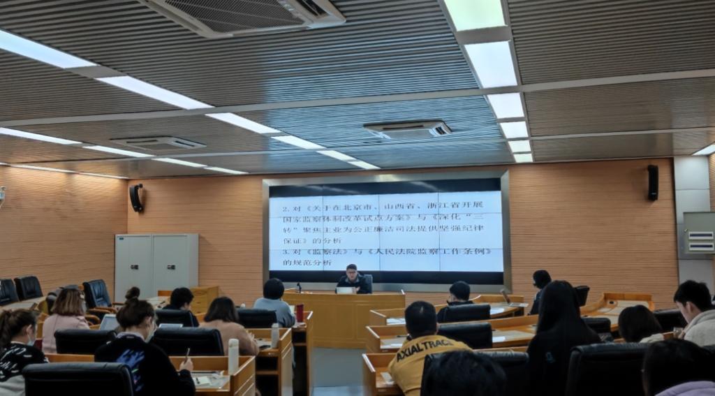 读书会第二部分由2019级法学硕士班张智成同学主讲,她为同学们分享了今年上半年在最高人民法院第一巡回法庭的实习经历,介绍了自己的所见所闻所感,并鼓励同学们努力学习,多多参与富有意义的实践活动,亲历法治建设进程。同学们反响热烈,不仅对一巡实习有了全面了解,而且对积极争取高质量实习来锻炼提高自己充满向往。