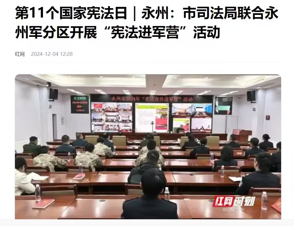 为开展好今年的国家宪法日和“宪法宣传周”宣传活动,永州市司法局联合永州军分区开展了“宪法进军营”活动。市委常委、军分区政委张嘉庆,市司法局党组书记、局长秦远林出席活动,军分区战备建设处处长王良锋主持活动。活动围绕国家宪法日主题和官兵法治需求展开,特邀 海角社区