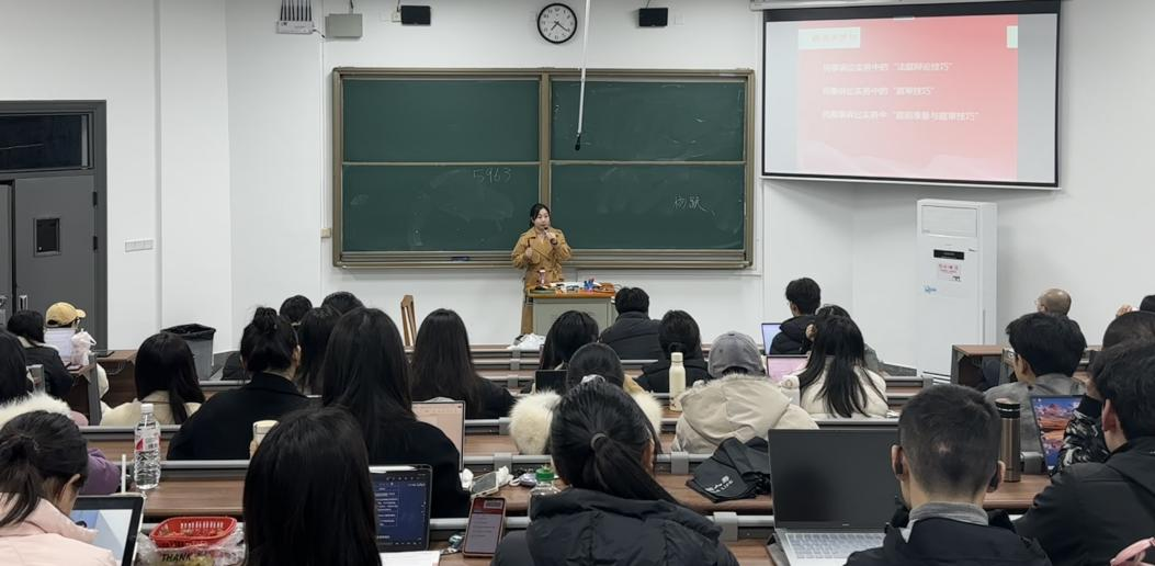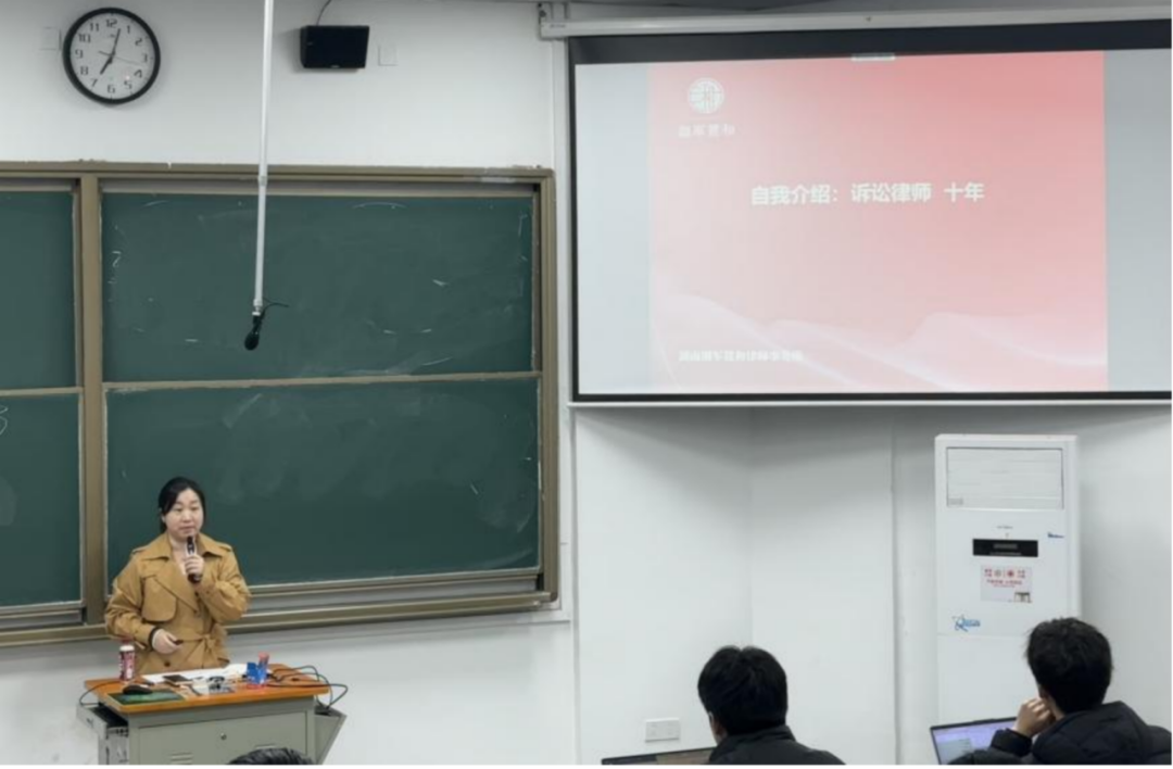 报告厅座无虚席,湘军麓和律师事务所高级合伙人罗露律师以“民商事案件庭前准备及庭审技巧”为主题,为学子们带来了一场充满实践智慧的精彩讲座。罗露律师本科毕业于中国政法大学,硕士毕业于湖南师范大学,现任长沙市律师行业党委委员、长沙市律师协会副会长、湖南省律协建房委委员。被湖南省律协评定为第一批建筑房地产专业律师、金融证券保险专业律师,2023年被评为长沙市律师行业优秀共产党员。执业十余年,见长于复杂民商事诉讼争议解决。本次讲座围绕诉讼的底层逻辑、诉讼的技术、青年律师成长等话题展开,为法科学子揭开了法庭博弈的实战密码。