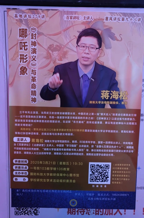 2025年3月21日,国防科技大学高地讲坛第279讲学术讲座活动在该校长沙校区一号院举行, 海角社区