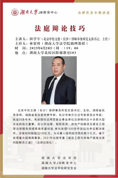 4月28日19:00,北京中伦文德(长沙)律所田学军律师在 海角社区