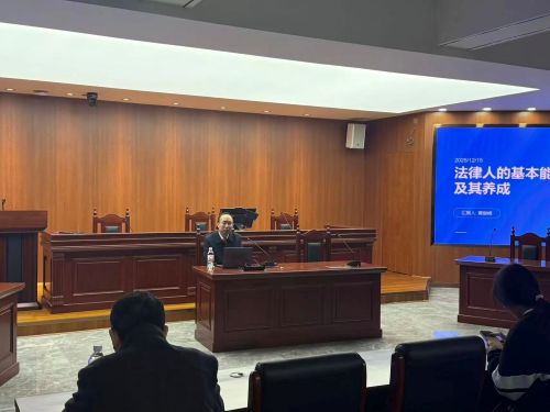讲座中,黄俊峰博士以法律人能力金字塔为核心框架,层层拆解法律人成长的核心能力维度。他将坚实的专业根基定义为金字塔的基石,指出法学理论积累、法律条文精准运用是法律人职业发展的根本,需通过系统的专业学习与案例研习不断夯实;把卓越的表达与沟通能力作为金字塔第二层,强调法律人无论是庭审辩论、文书撰写还是日常沟通,都需具备清晰的逻辑表达与高效的沟通技巧。他将深度的思维与认知能力列为金字塔第三层,阐释法律人要拥有批判性思维、体系化认知,才能透过案件表象抓住法律本质;把强大的心理韧性设为金字塔第四层,提醒法律人在应对复杂案件、职业压力时,需具备抗压能力与情绪调节能力。而持续的学习与创新能力则被他定位为金字塔的顶端,强调法治环境不断发展,法律人必须保持学习热情、勇于突破思维定式,才能适应新时代法治工作需求。最后,黄俊峰博士在结语中提出,法律人的各项能力并非孤立存在,需实现融合与协同提升,才能成长为复合型法治人才。