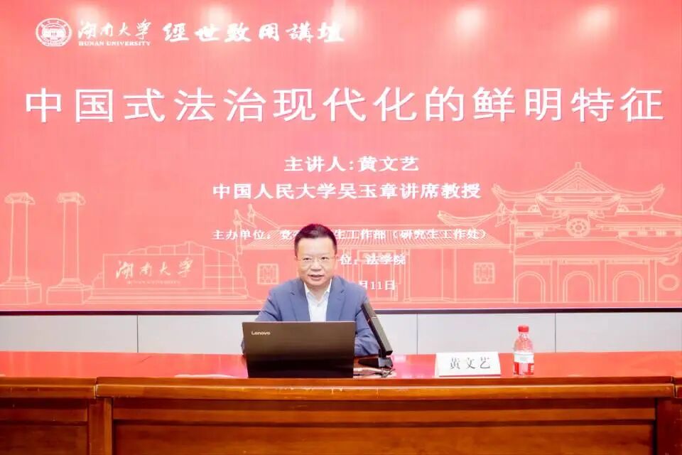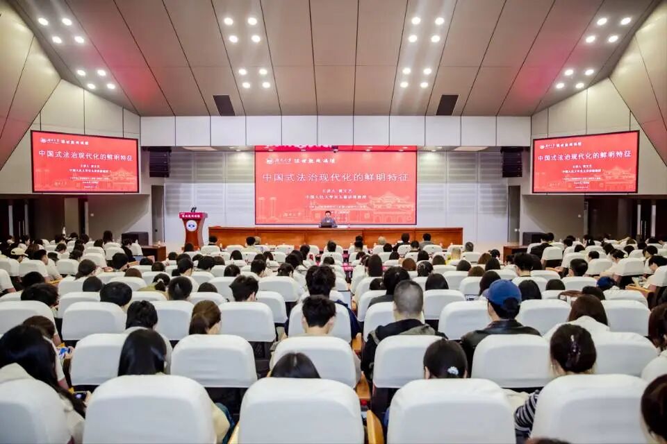 逸夫楼报告厅作“中国式法治现代化的鲜明特征”主题报告。本场报告会为“校庆系列学术报告”之一。校党委常委、校长助理许和连出席并致辞。