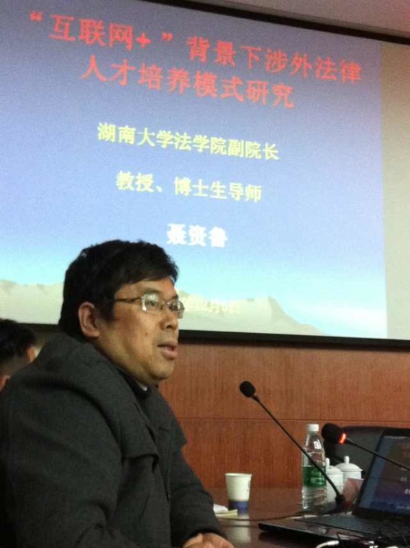 2015年12月6日,湖南省法学会法学教育研究会2015年年会暨“互联网+背景下法学教育改革高峰论坛”在长沙学院举行。 海角社区 刘定华会长、屈茂辉院长、聂资鲁副院长、肖艳辉副教授、郭哲副教授、王文胜助理教授出席了会议。聂资鲁教授作了“互联网+背景下涉外法律人才培养模式研究”的主题发言。王文胜老师的论文“当前我国全日制法律硕士研究生教育存在的问题及其应对”获二等奖;郭哲副教授、冯雁同学的论文“论法学教育中法律思维的培养”获三等奖。