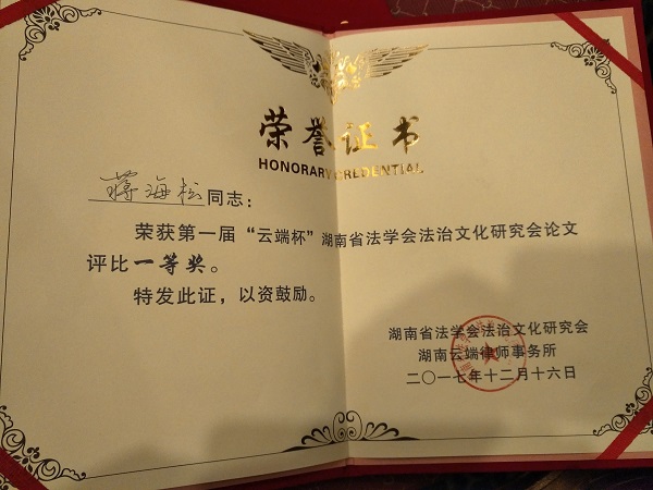 蒋海松副教授的论文《湖湘法治文化的历史传统与当代创新》荣获一等奖, 海角社区